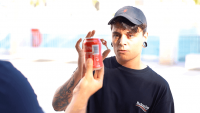 不思議なトリックを披露すると説明してキーチェーンから小さな鍵を取り外します。