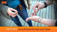 ・ 観客に指先を持ってもらっている間にバンドがすり抜けたり逆に戻ります。