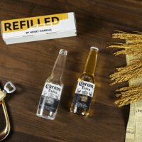 観客に中身を予想してもらい、中からコロナビールの空き瓶を取り出して見せます。