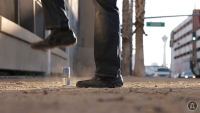 潰れた缶を更に踏みつぶすように見えるはずが缶が元に戻ってしまいます。