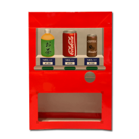 折り畳まれた自販機を組み立てて、お金を入れてボタンを押すと…