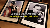 額縁に入ったハリー・フーディーニのポートレート写真が動き出して、アニメーションを披露しながら観客が思い浮かべているカード / 情報が当てられます。