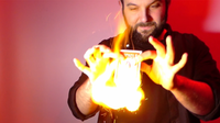 ライターを着火してもらい炎の中から何かを両手でつまんで、火を消します。
