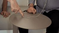 金色のチェーンで「八の字」をテーブルの上に作ります。